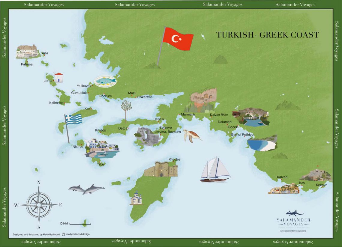 The Turkish Riviera, also known popularly as the Turquoise Coast, is an area of southwest Turkey encompassing the provinces of Antalya and Muğla, and to a lesser extent Aydın, southern İzmir and western Mersin. The Turkish Riviera allows guests to take a trip aboard our own boat Salamander to ancient cities, harbours, tombs, and beaches in the small coves, forests, and streams that are on the Turquoise Coast